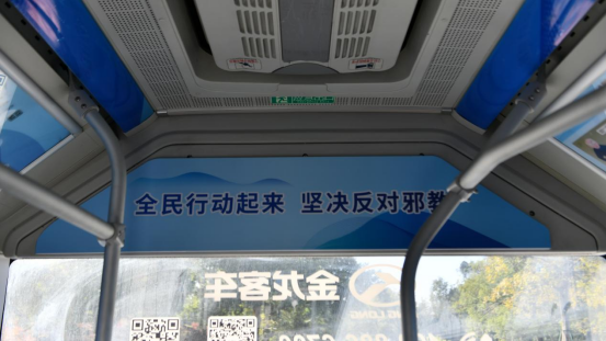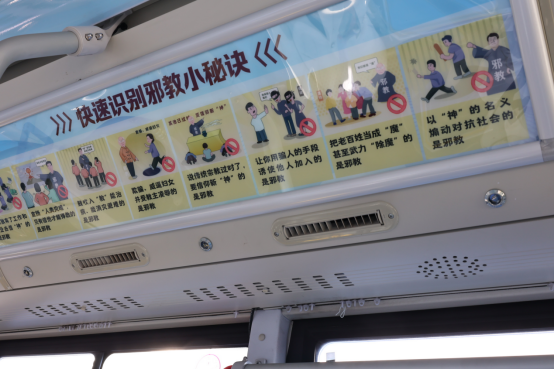 同时,“全民行动起来,坚决反对邪教”等醒目的宣传标语遍布车厢,时刻提醒着乘客们要保持警惕,共同维护社会的和谐稳定。