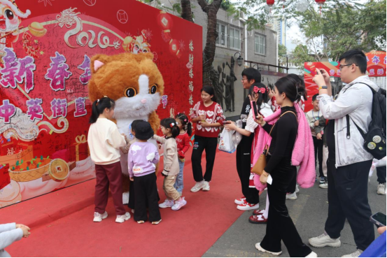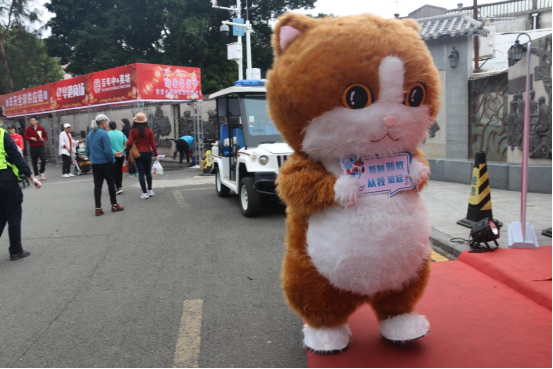 深港年货集市启幕单日入镇人员达5万余人次,现场橘猫“平安”博主一亮相,就吸引了全国各地游客的目光。可爱的卡通玩偶拿着反邪教宣传资料,一手向过往群众打着招呼。群众纷纷涌到他们面前,积极主动地向他们要宣传品,并争相与他们合影。