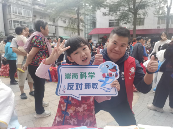 现场邀请到区人大代表向群众讲解反邪教知识以及识别邪教的技巧。从谨防邪教乘“熟”而入、乘“礼”而入、乘“钱”而入、乘“虚”而入、乘“病”而入——五个入口向大家详细宣传了邪教的危害以及如何识邪防邪。卡通公仔“平安”还叮嘱老人们信教聚会要到宗教场所,防止误入邪教,要科学健身、保持乐观心态,远离邪教,反对邪教。