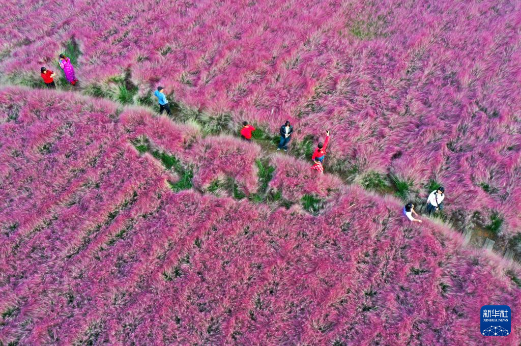 10月7日,游客在河南省孟州市赵和镇游玩(无人机照片)。