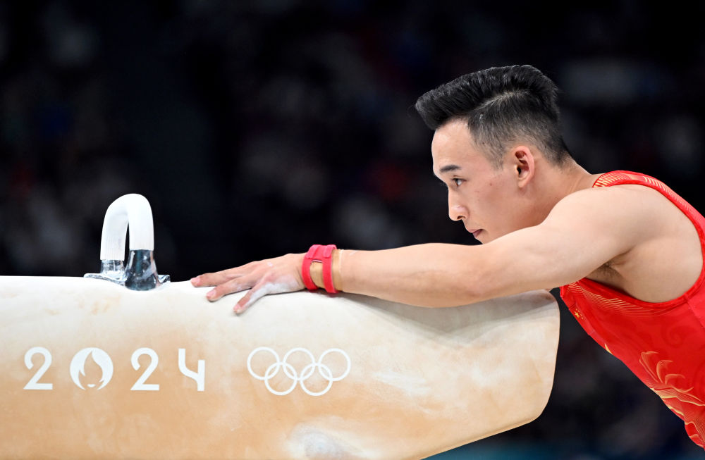 2024年7月29日,肖若腾在巴黎奥运会体操男子团体决赛鞍马比赛中。新华社记者 程敏 摄