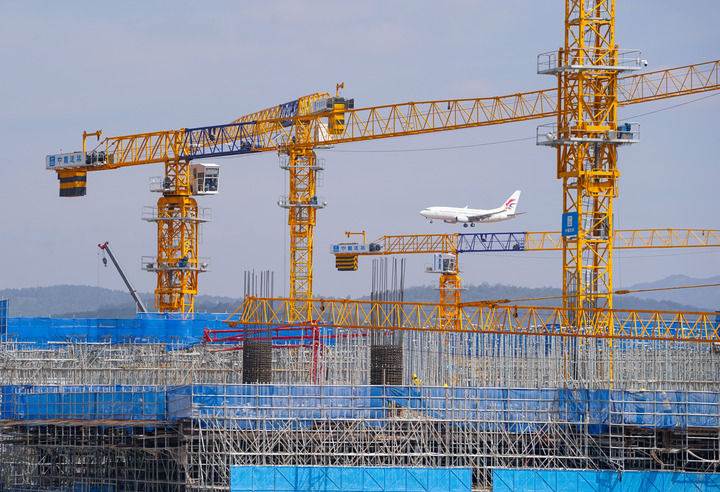 渝昆高铁长水机场站施工现场(2025年5月21日摄)。新华社记者 陈欣波 摄