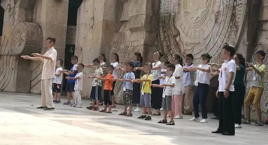 ▲家长带着孩子参加“乾源文化”打坐练功
