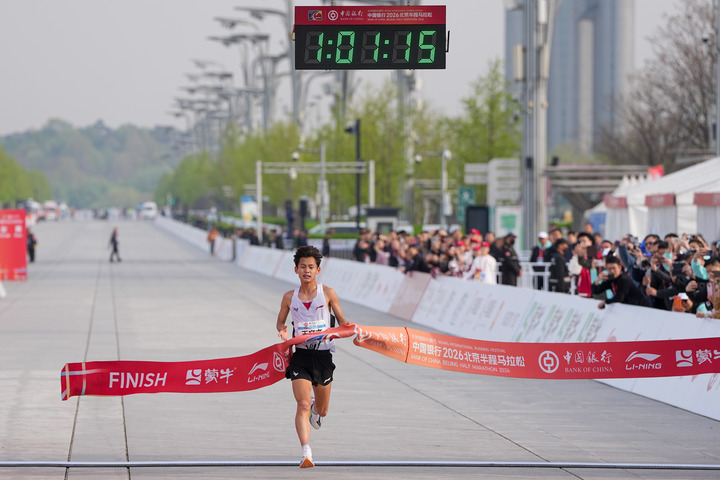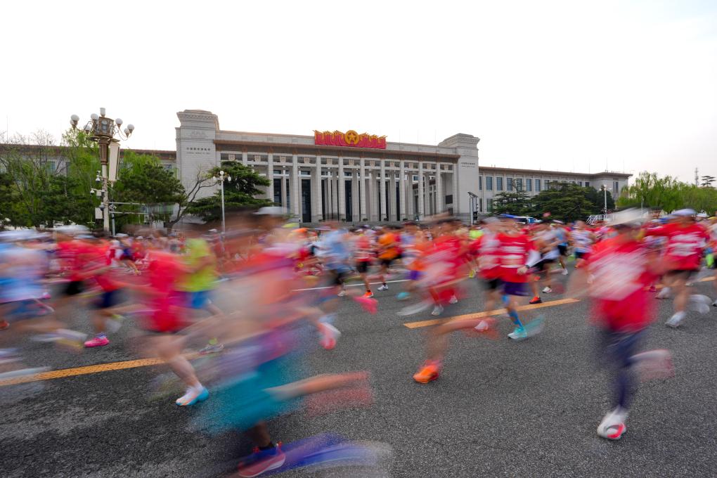 4月12日,参赛选手在比赛中出发。 新华社记者 鞠焕宗 摄