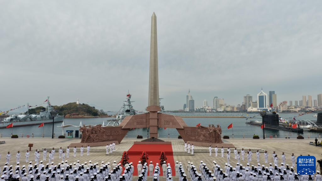 4月23日,驻青岛海军部队在海军英雄广场举行致敬人民海军英雄仪式。新华社发(李凤祥 摄)